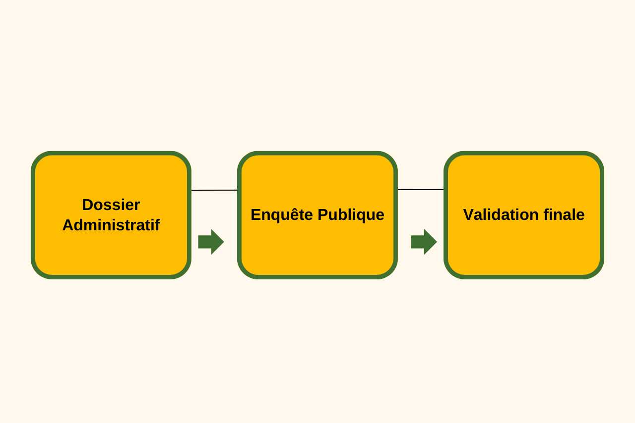 | Dossier Administratif | Préparation du dossier d'utilité publique, études d'impact environnemental, et justification de l'intérêt général avec une durée totale de 12-18 mois. |